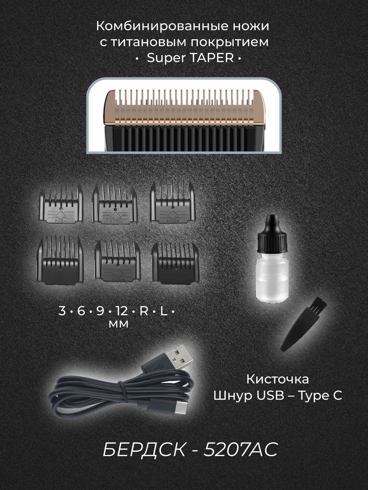 Для большей длины используйте насадки-гребни (3, 6, 9 и 12 мм).